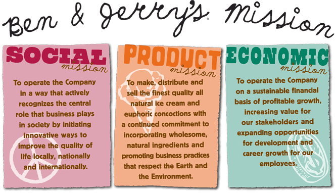Underlying the mission of Ben & Jerry’s is the determination to seek new and creative ways of addressing all three parts, while holding a deep respect for individuals inside and outside the company and for the communities of which they are a part.